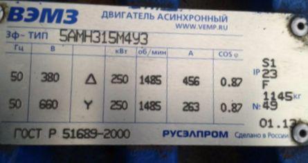 Електродвигун 5АМН315М4 250 кВт/1500 об/хв. 380 В