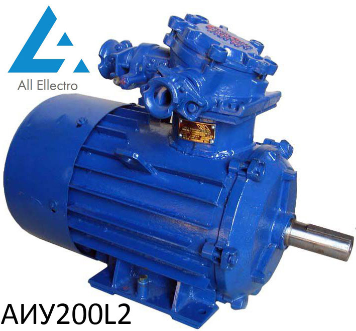 Асинхронний двигун вибухозахищений серії АИУ (АИУ200L2) дуже часто застосовується на вибухонебезпечних виробництвах вугільної та рудникової промисловості. Електродвигун АИУ200L2 можна використовувати для роботи в приміщеннях, у зовнішніх установках, у підземних виробках шахт, де є можливість вибуху метану або вугільного пилу.