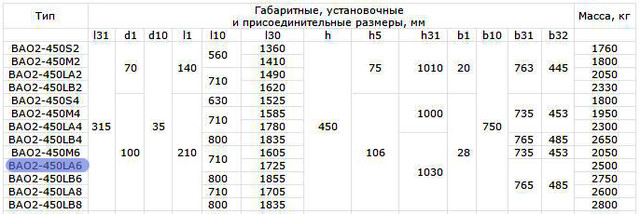 Електродвигун ВАО2-450LA6 характеристики